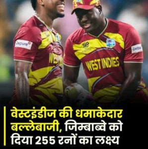ZIM VS WI live score :- धमाकेदार बल्लेबाज़ी! वेस्टइंडीज ने जिम्बाब्वे के सामने रखा 255 रन का पहाड़ जैसा लक्ष्य